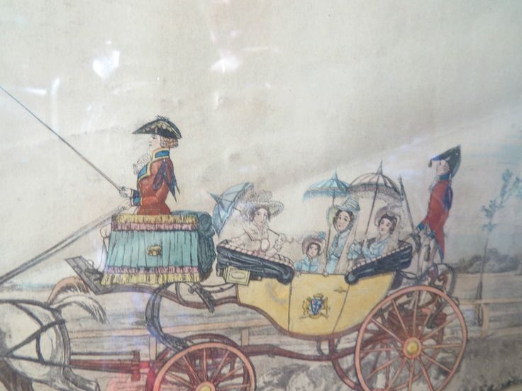 The barouche had a collapsible hood over the back and was considered a summer vehicle used for driving in the great parks. It was drawn by a pair of high-quality horses to complement the expensive and fashionable vehicle.